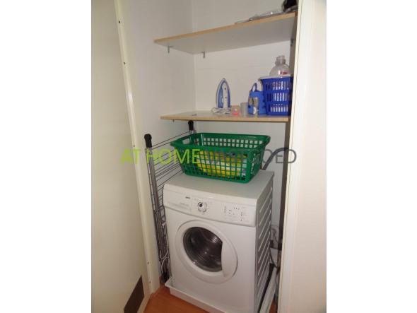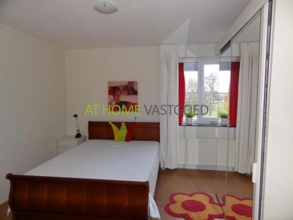 Entrance hall, cloakroom, toilet, closet with washer / dryer. Large and bright living room with open kitchen, which is equipped with all necessary appliances such as refrigerator, freezer, hob, extractor, microwave and dishwasher. From the living room you have access to the terrace facing southwest with view over park and pond. Spacious bedroom with double bed and large wardrobe. 2nd bedroom with double bed and wardrobe. Very nice bathroom with shower, bath and sink.