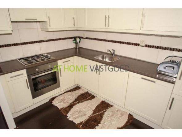 De open woonkeuken is afgewerkt met een laminaatvloer, spachtelputz als wandafwerking en een betegelde achterwand. De keuken is geplaatst in een L- opstelling en is voorzien van een koelkast, vaatwasser, spoelbak, 4 pits gaskookplaat, oven en een afzuigkap. Tevens is de keuken voorzien van een ruimte vaste zithoek.