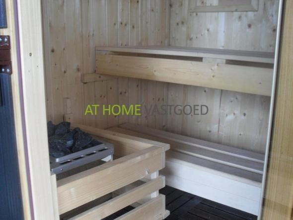Indeling:Entree, hal met toilet en meterkast. Woonkamer aan de achterzijde met open keuken. De keuken is voorzien van een inductie kookplaat, afzuigkap, spoelbak, magnetron/oven, vaatwasmachine. Via de woonkamer toegang tot het terras met electrische zonnescherm, houten vlonders, tuinverlichting en sauna. De slaapkamer is gelegen aan de voorzijde en is ingericht met een twee persoonsbed, vaste kastenwand, flatscreen TV, direct toegang tot de badkamer met inloopdouche , wasmachine/droogcombinatie en wastafel met spiegel.