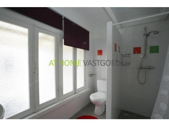 De badkamer beschikt over een douche en een wastafel. Hier bevindt zich ook het toilet.