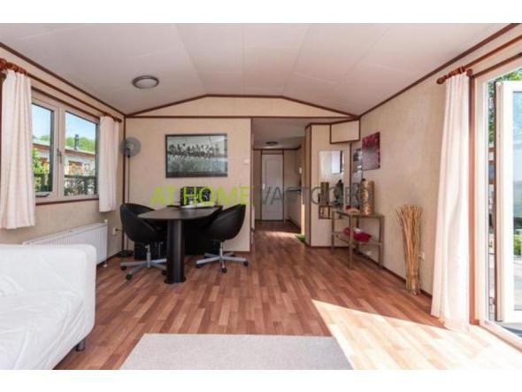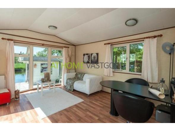 Zijentree, royale lichte woonkamer met uitzicht over water en weilanden. Halfopen keuken v.v. koelkast, gaskookplaat en afzuigkap. Hoofdslaapkamer met inbouwkasten. Tweede slaapkamer. Keurige badkamer met toilet, douche, wastafel en wasmachine aansluiting.