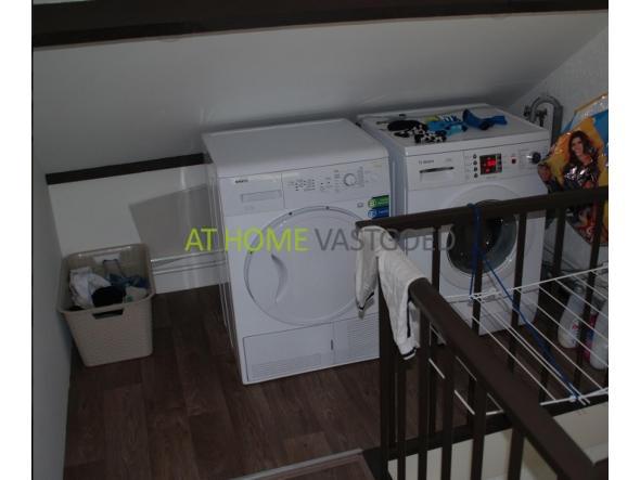 De trap komt uit op overloop, aan de linkerkant een kantoorruimte en aan de rechterkant wasmachine en droger. Op deze verdieping is tevens een ruime kamer/slaapkamer van 15m2