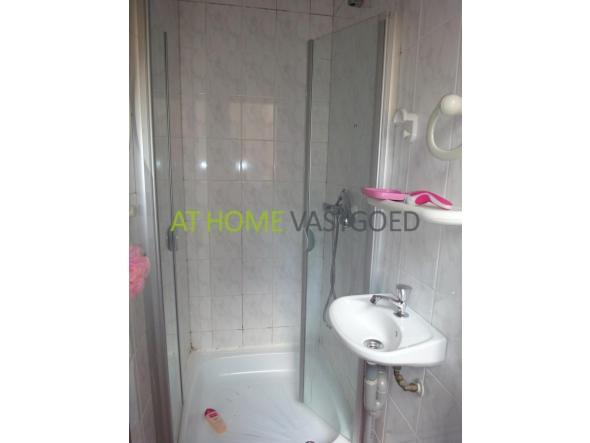 3e etage: overloop, keuken, badkamer met douche, toilet, entree kamer.