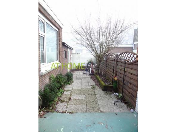 BG; gezamenlijke entree, hal, toilet, badkamer. Entree, woonkamer (ca.12m2) met openslaande deuren naar de tuin, eigen keuken voorzien van gasfornuis, oven en afzuigkap, aparte slaapkamer (ca.7m2.). De ruime tuin (ca.30m2) met schuurtje is gelegen op het oosten en is voor geheel eigen gebruik. Badkamer met douche en wastafel, separaat toilet.