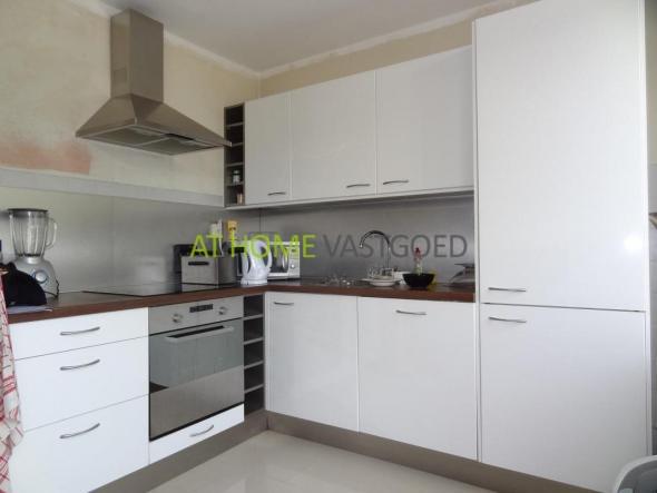Eerste etage: Overloop, toilet , ruime woonkamer voorzien van nette plavuizen vloer met vloerverwarming. De strakke half open keuken is van alle gemakken voorzien zoals; vaatwasser, keramische kookplaat, koelkast/vriezer, afzuigkap, oven en magnetron.