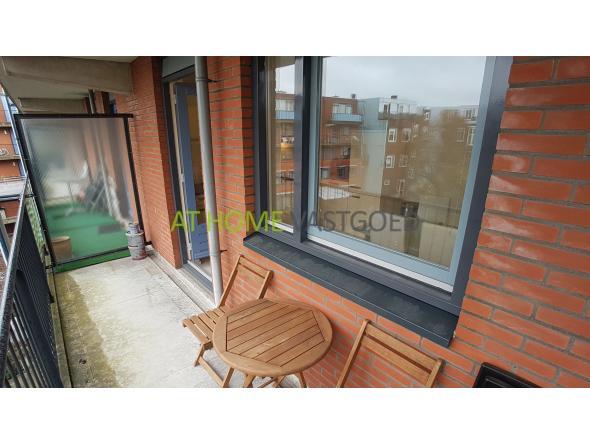 Ruime woonkamer voorzien van grote ramen waardoor deze veel lichtinval geniet, woonkeuken met toegang naar het balkon. De keuken is uitgerust met een keramische kookplaat, afzuigkap, oven, koelkast en vriezer.