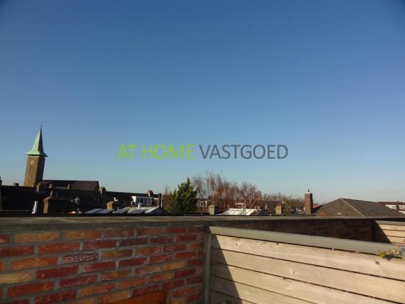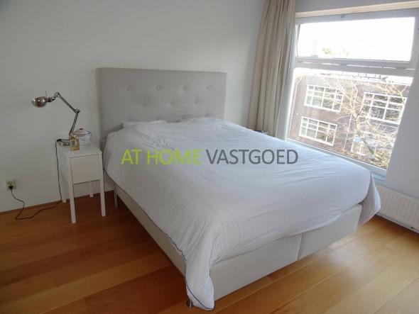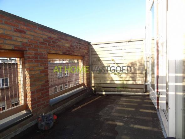 3e verdieping: overloop met studeer/slaapkamer met toegang tot het dakterras ca. 450x180 op het zuidwesten, hoofdslaapkamer aan de achterzijde met vaste kast, nette badkamer met toilet, douche en wastafel.