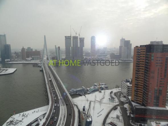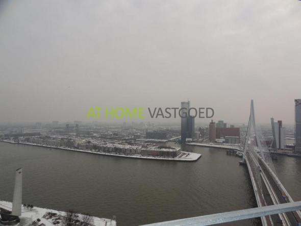 For rent: beautiful and completely decorated luxury penthouse on the 31st floor of the Hoge Heren. The apartment is appr. 223 m2. From all the rooms you have an amazing view over the Maas, the Erasmus Bridge and the city of Rotterdam.