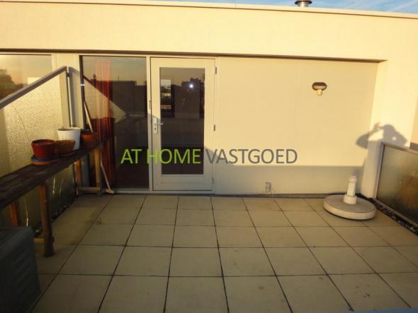 Overloop met deur naar het dakterras. Het dakterras gelegen op het zuidwesten is maar liefst 17 m² en heeft werkelijk fantastisch wijds uitzicht. Tevens treft u hier slaapkamer III, welke toegang geeft tot de aparte wasruimte met mechanische ventilatie unit.