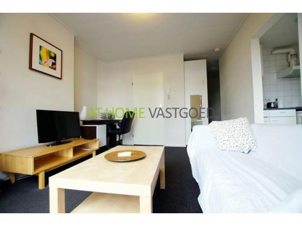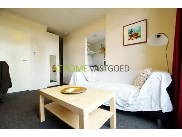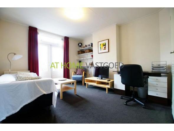 De studio is gelegen aan de achterzijde van het pand. De woonkamer beschikt over oa een bank, bureau en een TV en geeft toegang tot het balkon. De half-open keuken is voorzien van verschillende keuken- en huishoudelijke apparatuur, zoals: wasmachine, koelkast, combi-magnetron etc. De slaapkamer heeft een eenpersoonsbed en de badkamer heeft een douchecabine en wastafel.