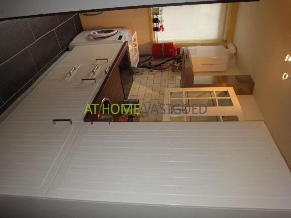 BG: entree, hal, knusse maar nette en fris betegelde badkamer. De badkamer is voorzien van een douche, wastafel en toilet. De mooie keuken is uitgerust met een koelkast/vriezer, kookplaat, afzuigkap, wasmachine en geeft toegang tot de riante tuin gelegen aan de achterzijde.