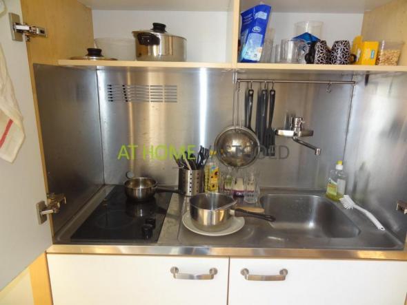 Entree studio, deze is voorzien van een 2 persoonsbed, kledingkast, eettafel, bank en tv. In de woonruimte is de kookgelegenheid welke is voorzien van kleine 2-pits kookplaat, wastafel en kleine koelkast. Nette badkamer met bad/douche combinatie, wastafel en toilet. Aan de achterzijde ligt de zeer ruime en zonnige tuin.