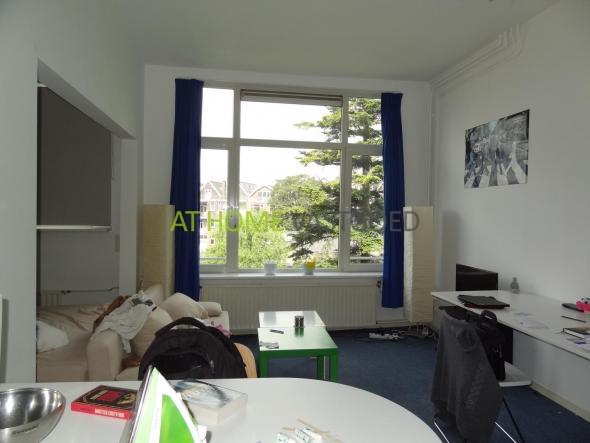 De studio is gelegen op de tweede verdieping en is voorzien van eigen badkamer en keuken, vloerbedekking en centrale verwarming.