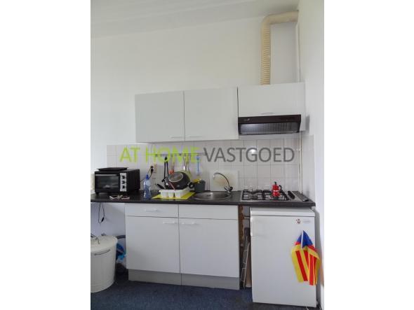 2e verdieping: overloop, entree studio, open keuken met gaskookplaat, afzuigkap en koelkast. De badkamer is voorzien van douche, wastafel en toilet.