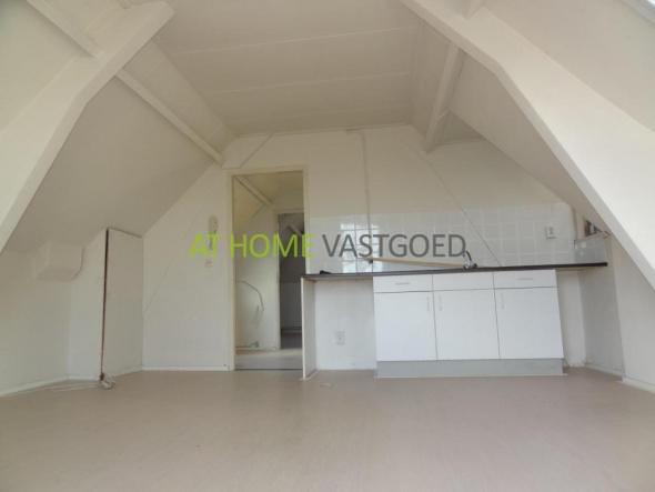 3e etage: Overloop, badkamer met douche en wasmachineaansluiting, apart toilet. Ruime woonkamer met open keuken (ca.22m2), slaapkamer van ca. 13m2.