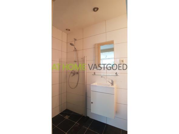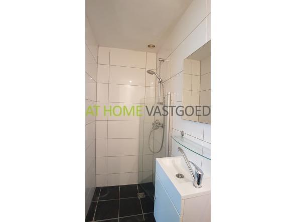 1e verdieping: entree, nette badkamer uitgerust met een douche, wastafel en toilet. Lichte woonkamer met open keuken voorzien van gaskookplaat, afzuigkap, oven en koelkast met vriezer. Het slaapgedeelte is gelegen aan de achterzijde en kijkt uit op de gezamenlijke tuin.