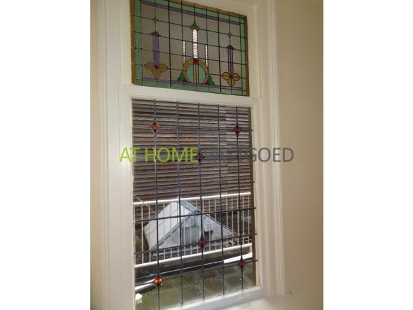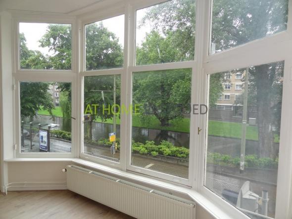 De etage is gelegen op de eerste verdieping, is voorzien van laminaat en glas in lood details en biedt leuk uitzicht op de singel.