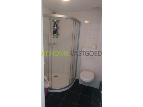 - Badkamer met douche, toilet, wastafel en wandradiator.