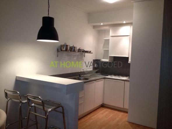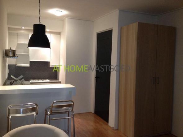 BG: entree studio welke is voorzien van nieuwe meubels zoals een boxspring tweepersoonsbed, fauteuils en een eet-bar. Kledingkast, T.V. en salontafel tevens aanwezig. Strakke keuken voorzien van een gaskookplaat, afzuigkap en koelkast. De badkamer beschikt over een douche, wastafel en toilet. Was/droog combinatie aanwezig.