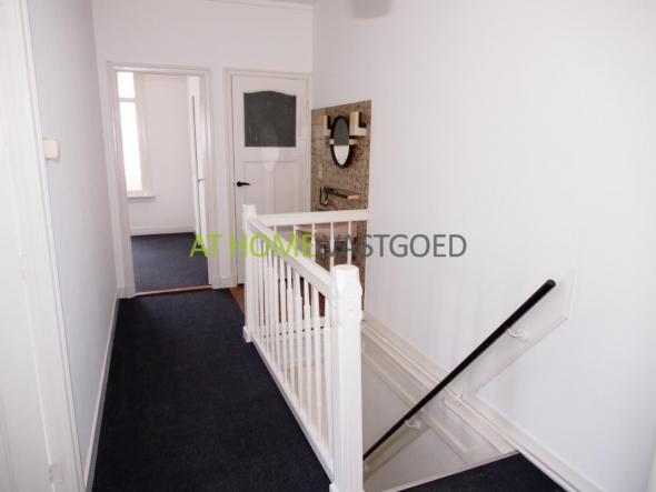 1e etage: overloop, toilet, entree slaapkamer met toegang tot de badkamer. De badkamer is voorzien van douche en wastafel. Entree woonkamer.