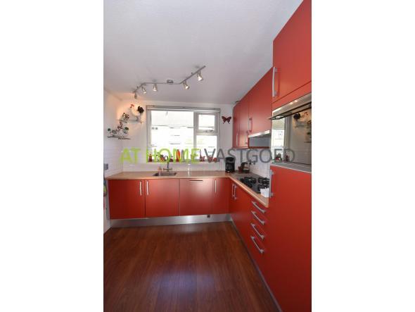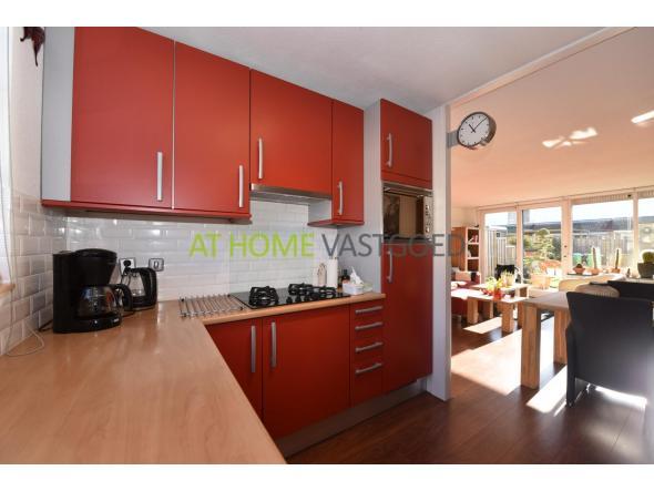 De open keuken ligt aan de voorkant van de woning en is voorzien van alle gemakken zoals een koelkast, vriezer, combimagnetron, gaskookplaat met afzuiger en vaatwasser.