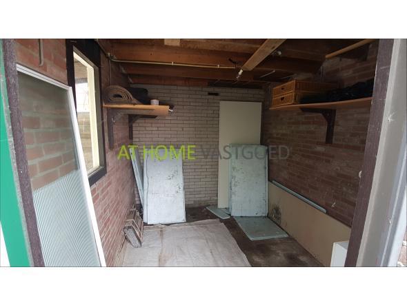 Begane grond: entree, hal, toilet met fonteintje, trap naar de bovenverdieping en toegang tot de woonkamer. De ruime lichte woonkamer is voorzien van laminaat, en biedt toegang tot de tuin met achterom en stenen berging. Nette eenvoudige keuken welke ook via de woonkamer te bereiken is.