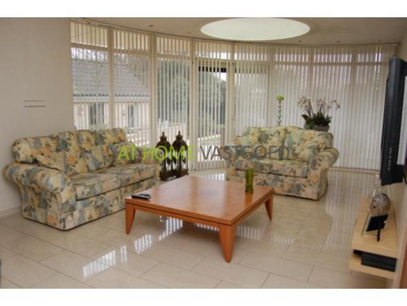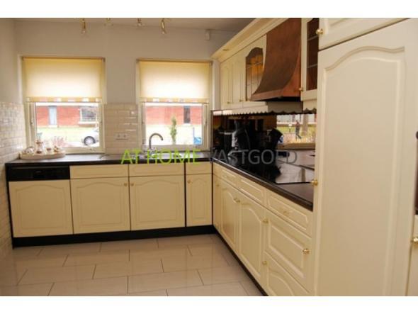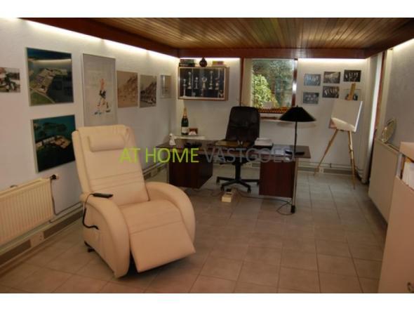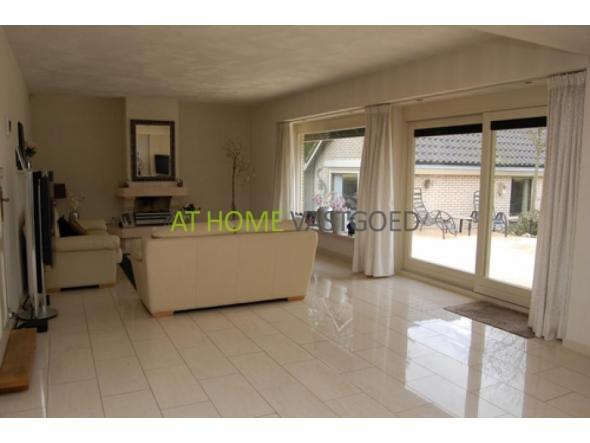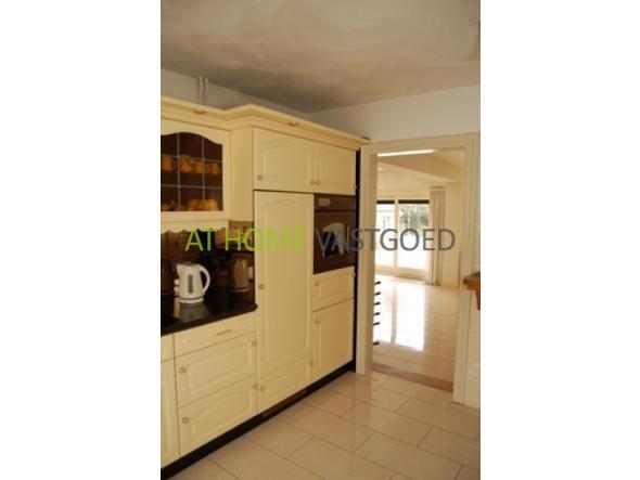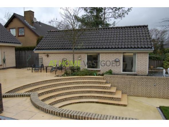 Ground floor.: Entrance / hallway, dense design loft, cupboard and luxury toiletries (gold leaf used in the tiles). Spacious living room (60m2) with gas fireplace (with remote), sliding doors and marble flooring with underfloor heating (ground). Half round Serre (16 m2) with patio doors and skylights. Modern kitchen in L-shape and equipped with various luxury appliances. Utility room for washing machine and extra sink with door to side garden. Bedroom (12 m2) with mirror sliding wardrobes. Bathroom with shower, towel radiator and sink.