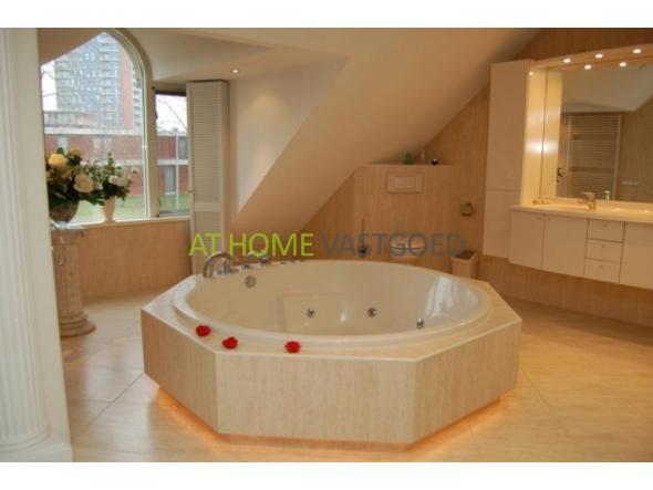 1st fl.: Overflow. Very large bedroom (42 m2), second room possible, designer wardrobe, a total of 3 dormer windows, air conditioning and modesty panels and behind lockers. Large bathroom with separate round 4-person whirlpool with jet streams and a 2 person shower / steam room / sauna, hanging closet, large vanity with double sink containing 2 design radiators and 2 side cabinets. Storage room with central heating and boiler and modesty panels and cupboard space.