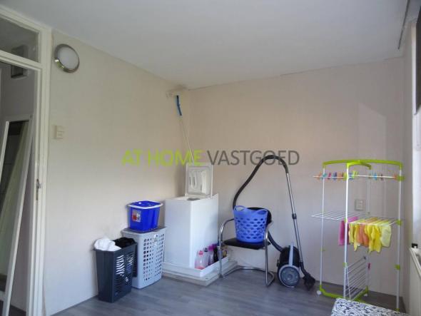 Vanuit de woonkamer heeft u toegang tot de ruime achtertuin op het zuiden met houten berging en eigen achterom. Open keuken in rechte opstelling voorzien van vaatwasser, gaskookplaat, combimagnetron, afzuigkap, koelkast en vriezer.