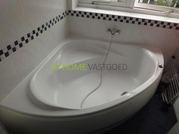 1e etage: overloop, ouderslaapkamer, fris betegelde badkamer met heerlijk ligbad, douchecabine, dubbele wastafel en 2e toilet. Tweede slaapkamer en derde slaapkamer welke is ingedeeld als inloopkast. Bergkast met aansluiting voor de wasmachine. Vaste trap naar de tweede etage.