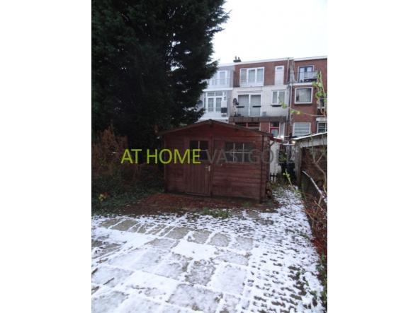 Entrance, bright hall with stairs to the first floor, 2 spacious (bed) rooms (approx. 19m2 and 14m2), first toilet, storage for washing machine and dryer which gives access to the garden (ca.60m2) with wooden shed located on the northwest.