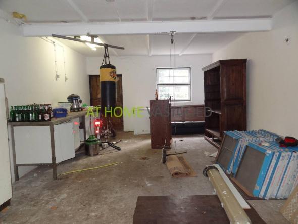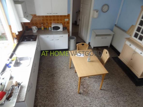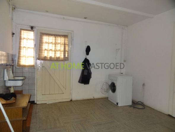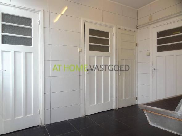Bijkeuken met wastafel en een aansluiting voor de wasmachine. Hier is voldoende ruimte voor het plaatsen van extra witgoed. Vanuit de bijkeuken is de eenvoudige badkamer met bad en douche bereikbaar. Er is een apart toilet.