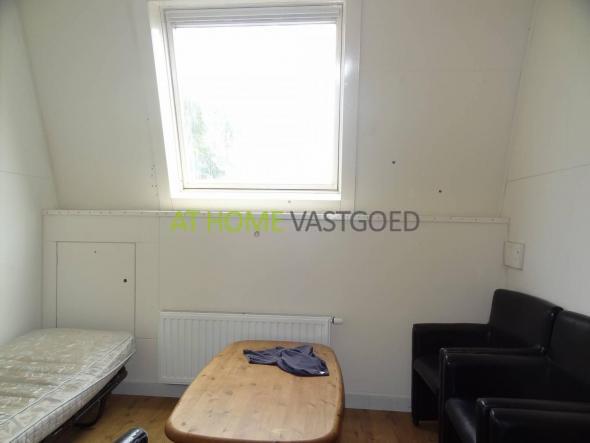 Woonkamer met dubbele muurkast. Vanuit de woonkamer is de slaapkamer/studeerkamer bereikbaar. Gesloten keuken met eenvoudig keukenblok. De keuken is ruim genoeg voor het plaatsen van een eethoek. De verdiepte kelderkast geeft extra opbergruimte.